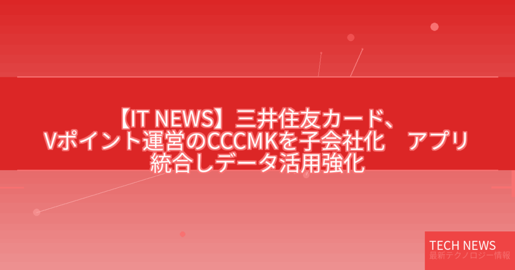 【IT NEWS】三井住友カード、Vポイント運営のCCCMKを子会社化 アプリ統合しデータ活用強化