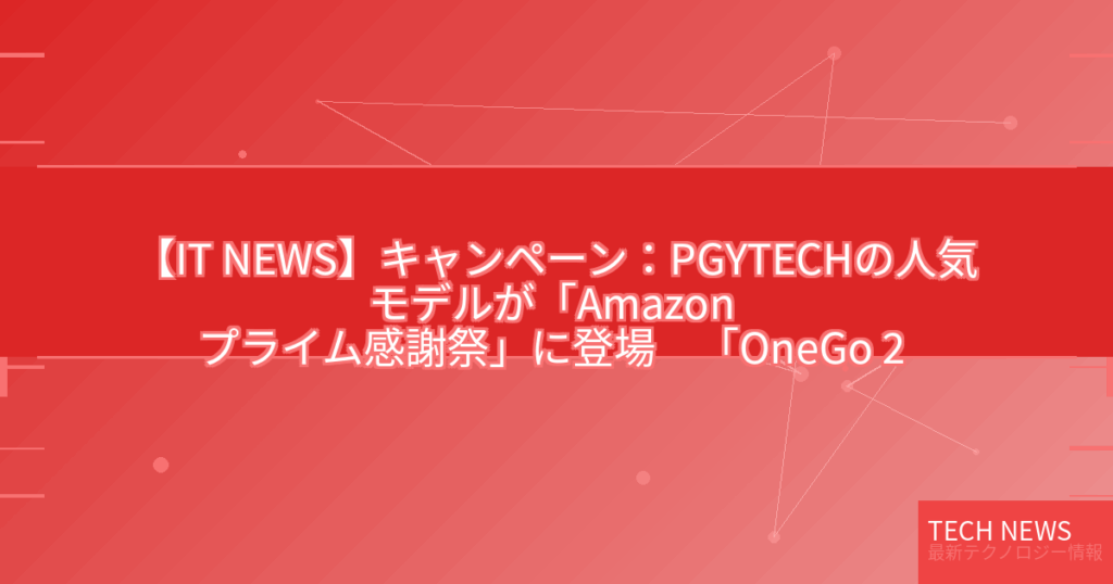 【IT NEWS】キャンペーン:PGYTECHの人気モデルが「Amazon プライム感謝祭」に登場 「OneGo 2 バックパック」「MantisPod Z」など