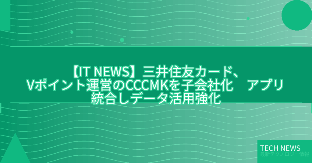 【IT NEWS】三井住友カード、Vポイント運営のCCCMKを子会社化 アプリ統合しデータ活用強化
