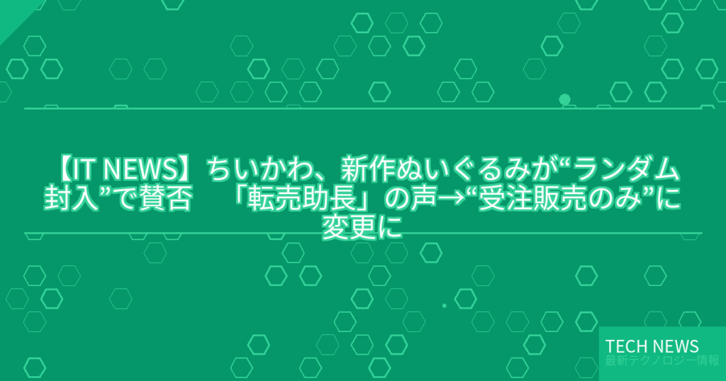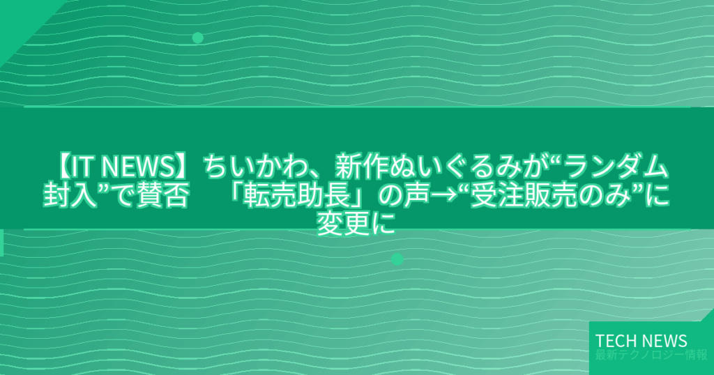 【IT NEWS】ちいかわ、新作ぬいぐるみが“ランダム封入”で賛否 「転売助長」の声→“受注販売のみ”に変更に