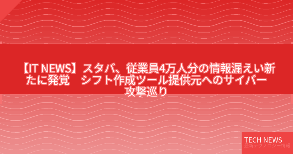 【IT NEWS】スタバ、従業員4万人分の情報漏えい新たに発覚 シフト作成ツール提供元へのサイバー攻撃巡り