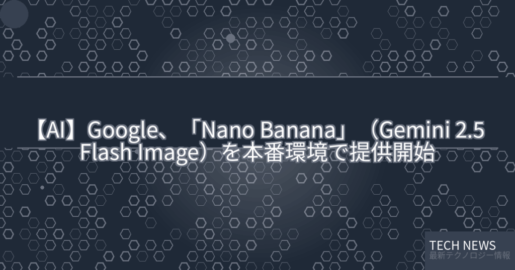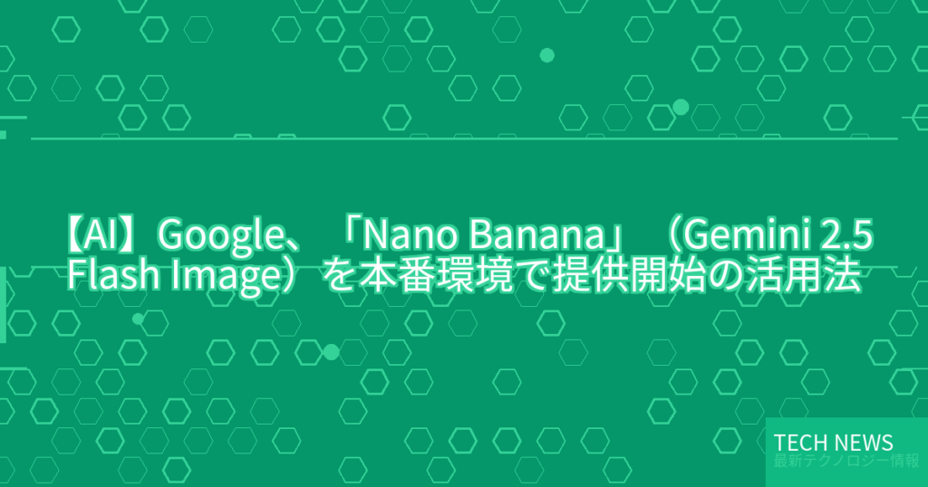 【AI】Google、「Nano Banana」(Gemini 2.5 Flash Image)を本番環境で提供開始