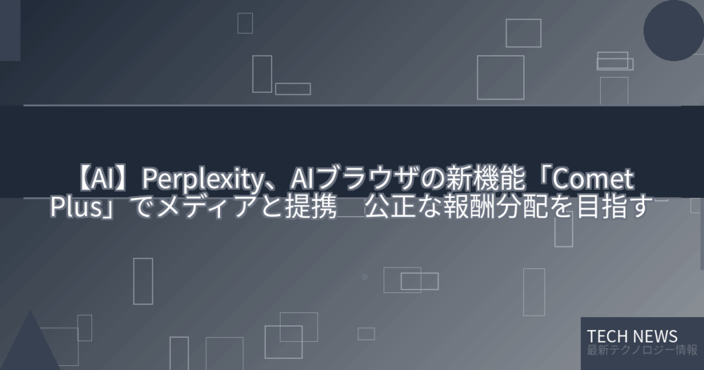 PerplexityはAIブラウザ「Comet」の新サービス「Comet Plus」を発表した。AIからCNNなどの提携メディアの記事に直接アクセスできる。参加パブリッシャーへの公正な報酬分配を目指す。無料プランユーザーは月額5ドルで、有料プランユーザーは無料で利用できる。 -