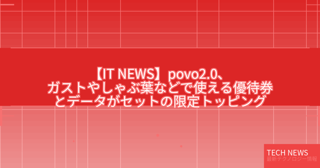 【IT NEWS】povo2.0、ガストやしゃぶ葉などで使える優待券とデータがセットの限定トッピング
