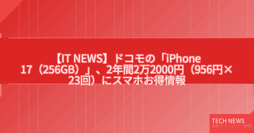 【IT NEWS】ドコモの「iPhone 17(256GB)」、2年間2万2000円(956円×23回)にスマホお得情報
