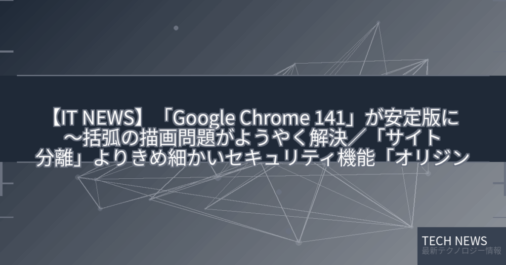 【IT NEWS】「Google Chrome 141」が安定版に ~括弧の描画問題がようやく解決/「サイト分離」よりきめ細かいセキュリティ機能「オリジン分離」も段階的に展開