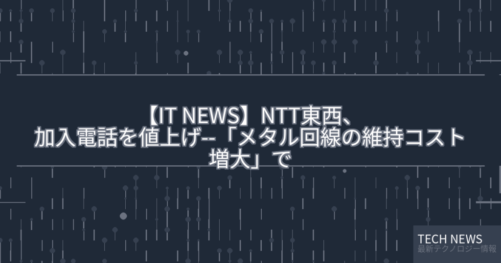 【IT NEWS】NTT東西、加入電話を値上げ–「メタル回線の維持コスト増大」で