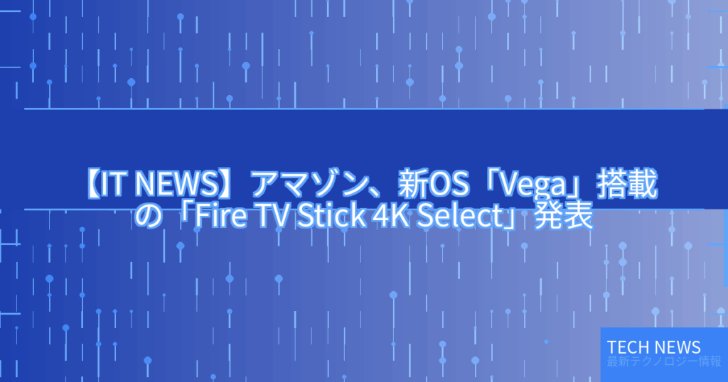 【IT NEWS】アマゾン、新OS「Vega」搭載の「Fire TV Stick 4K Select」発表