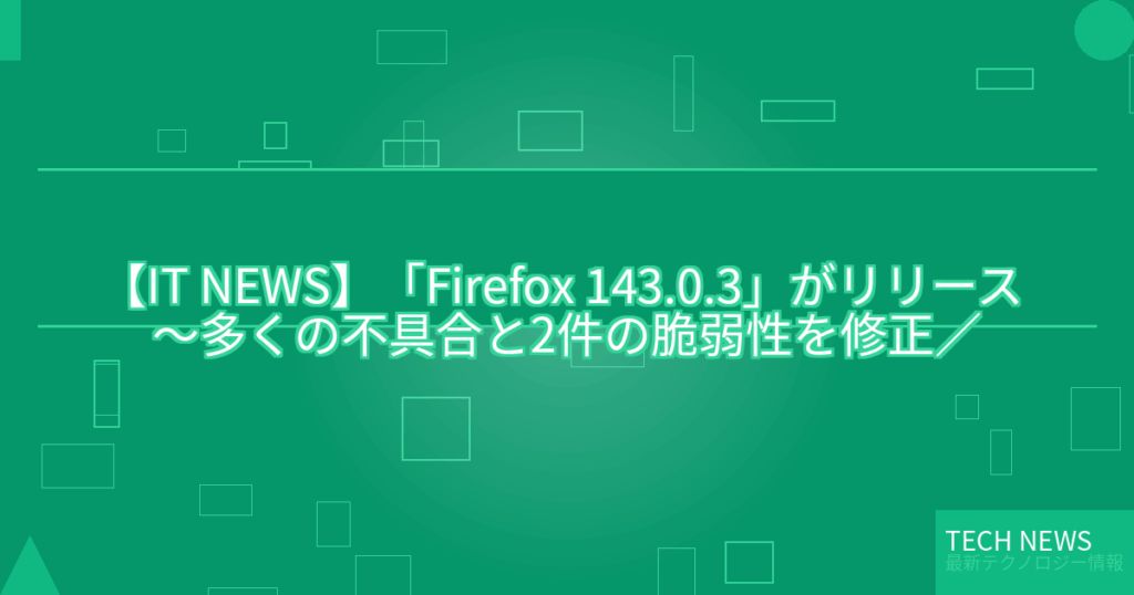 【IT NEWS】「Firefox 143.0.3」がリリース ~多くの不具合と2件の脆弱性を修正/