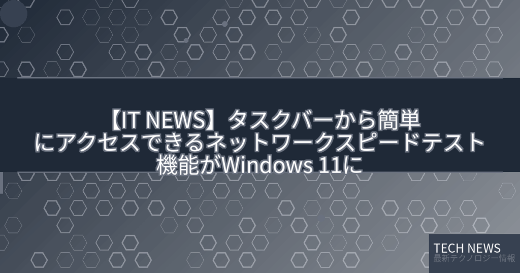 【IT NEWS】タスクバーから簡単にアクセスできるネットワークスピードテスト機能がWindows 11に