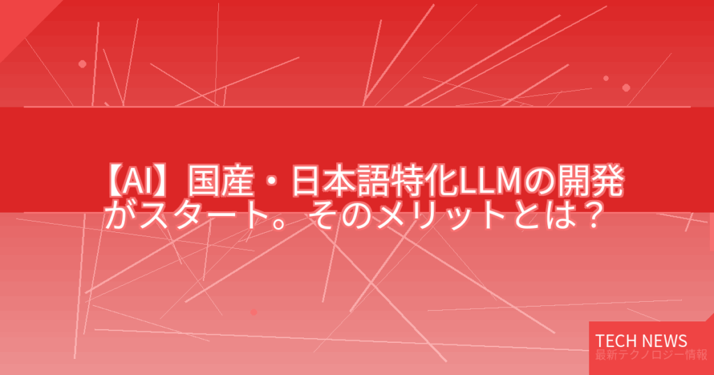 【AI】国産・日本語特化LLMの開発がスタート。そのメリットとは?