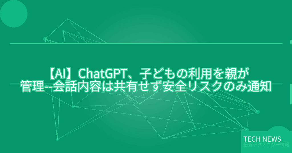 【AI】ChatGPT、子どもの利用を親が管理–会話内容は共有せず安全リスクのみ通知