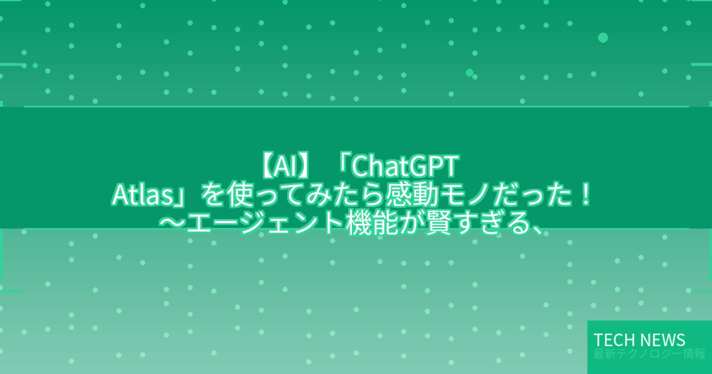 日本時間10月22日、OpenAIからChatGPTを搭載したAIブラウザー「ChatGPT Atlas」(以下、Atlas)がローンチされた。 -