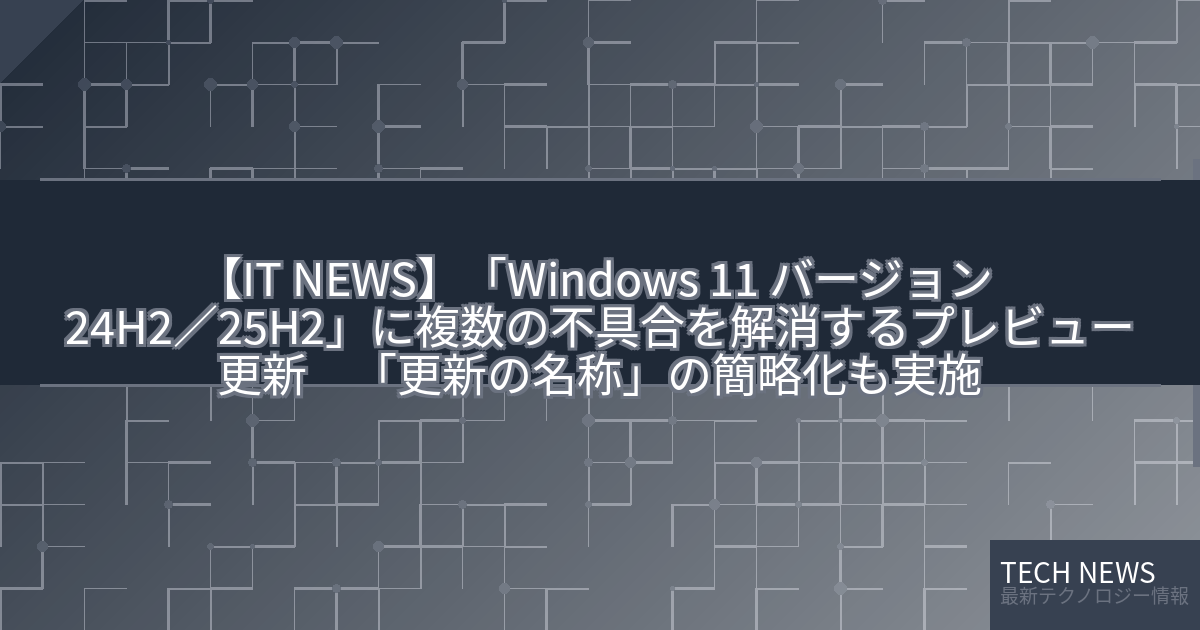 ・元記事タイトル:「Windows 11 バージョン 24H2/25H2」に複数の不具合を解消するプレビュー更新 「更新の名称」の簡略化も実施