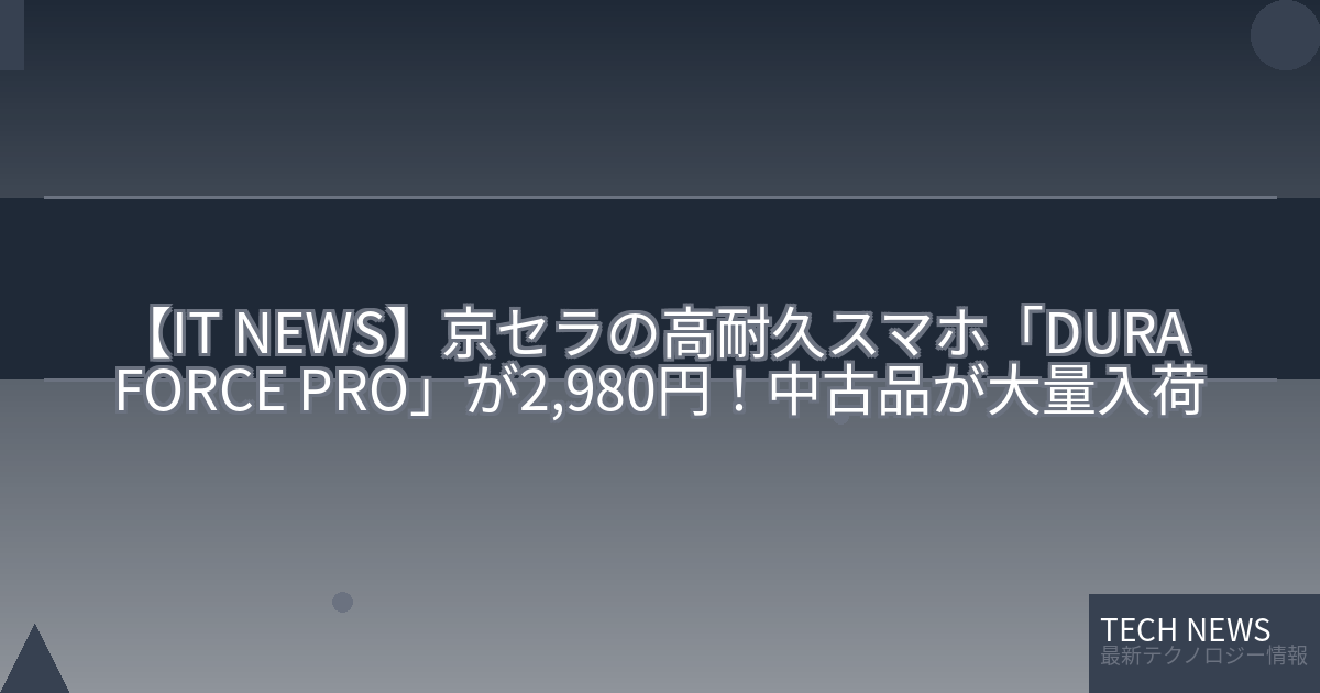 記事タイトル:京セラの高耐久スマホ「DURA FORCE PRO」が2,980円!中古品が大量入荷