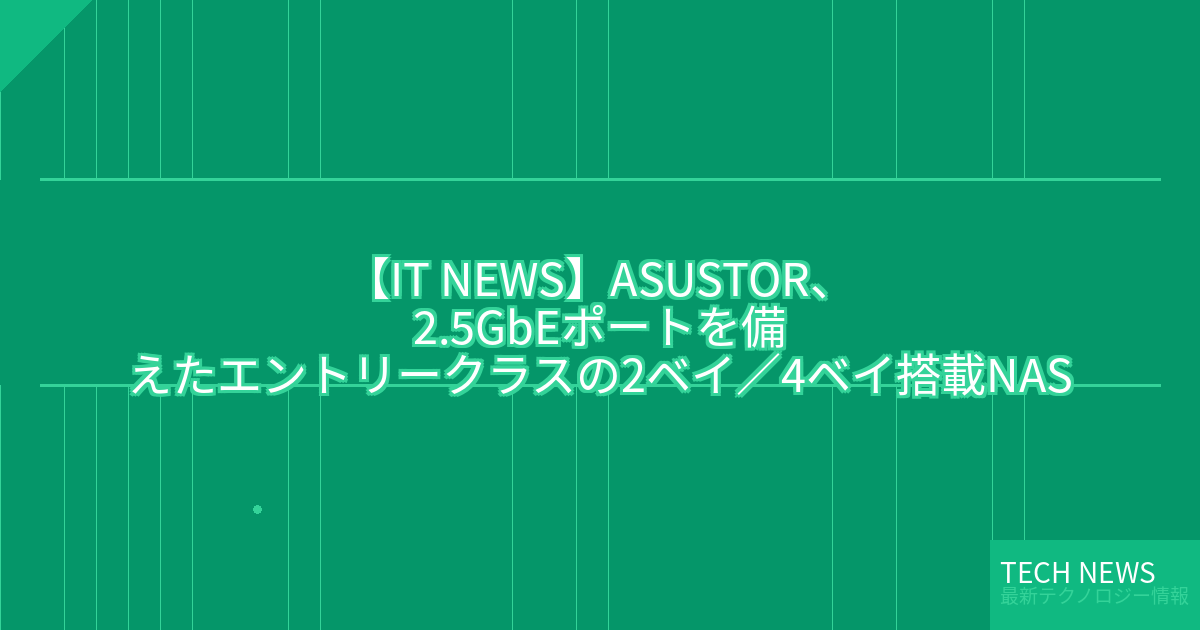【IT NEWS】ASUSTOR、2.5GbEポートを備えたエントリークラスの2ベイ/4ベイ搭載NAS