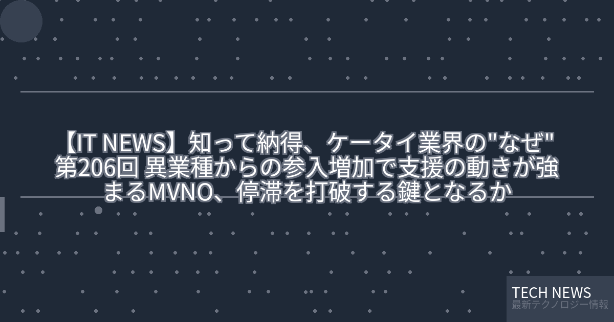 記事タイトル:知って納得、ケータイ業界の”なぜ” 第206回 異業種からの参入増加で支援の動きが強まるMVNO、停滞を打破する鍵となるか