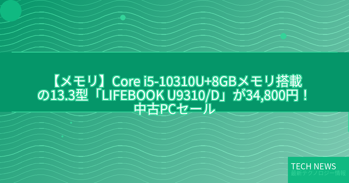 記事タイトル:Core i5-10310U+8GBメモリ搭載の13.3型「LIFEBOOK U9310/D」が34,800円!中古PCセール