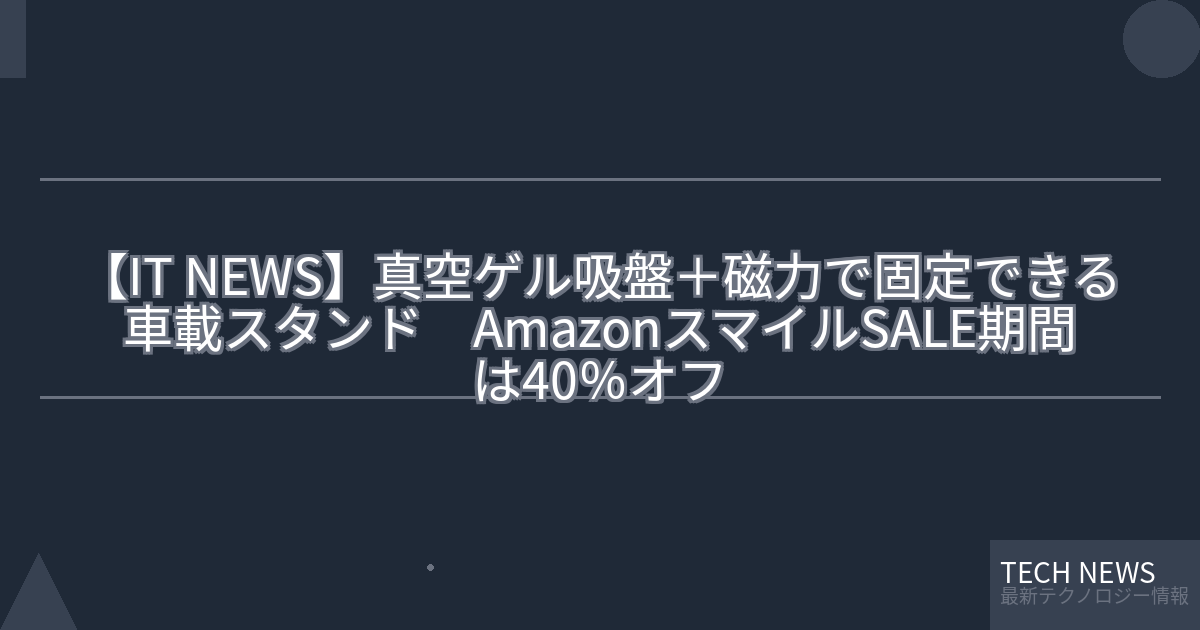 記事タイトル:真空ゲル吸盤+磁力で固定できる車載スタンド AmazonスマイルSALE期間は40%オフ