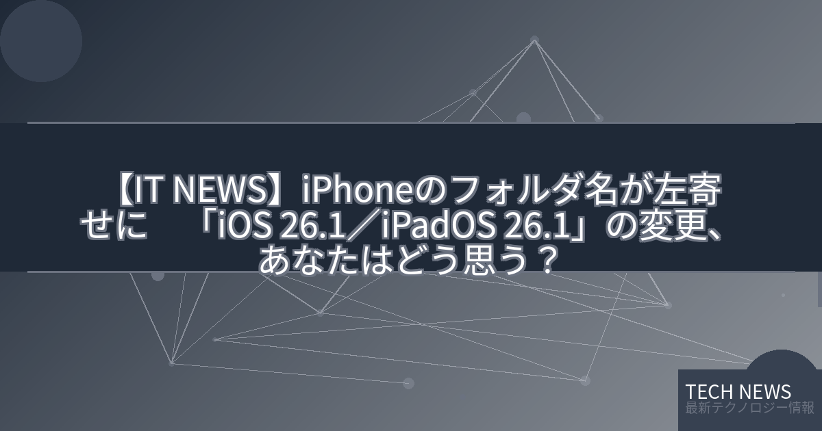 記事タイトル:iPhoneのフォルダ名が左寄せに 「iOS 26.1/iPadOS 26.1」の変更、あなたはどう思う?
