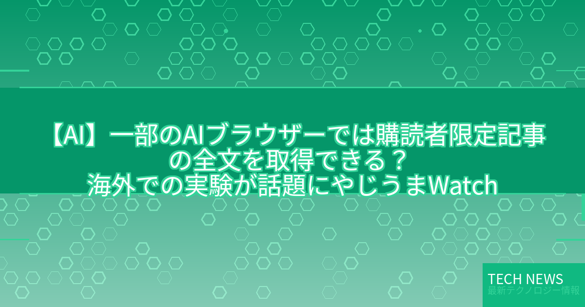記事タイトル:一部のAIブラウザーでは購読者限定記事の全文を取得できる? 海外での実験が話題に【やじうまWatch】