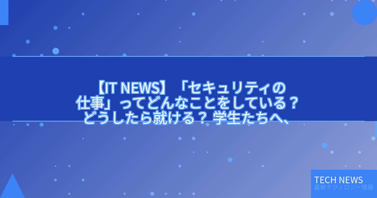 ・元記事タイトル:「セキュリティの仕事」ってどんなことをしている? どうしたら就ける? 学生たちへ、現場の“リアルな声”届けたい 「Internet Week 2025」でオンライン講演。30歳以下の学生は参加無料