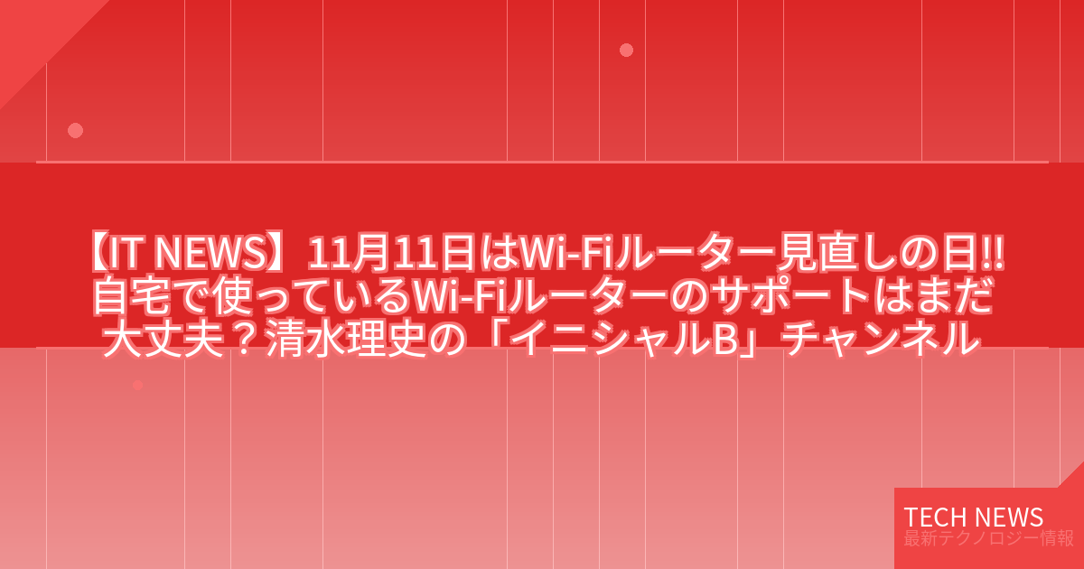 ・元記事タイトル:11月11日はWi-Fiルーター見直しの日!! 自宅で使っているWi-Fiルーターのサポートはまだ大丈夫?【清水理史の「イニシャルB」チャンネル】