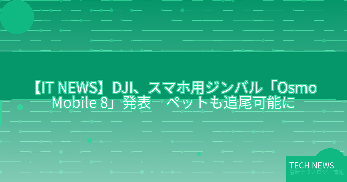 【IT NEWS】DJI、スマホ用ジンバル「Osmo Mobile 8」発表 ペットも追尾可能に
