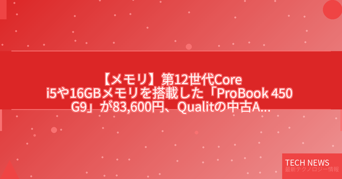 ・元記事タイトル:第12世代Core i5や16GBメモリを搭載した「ProBook 450 G9」が83,600円、Qualitの中古Aランク品セール