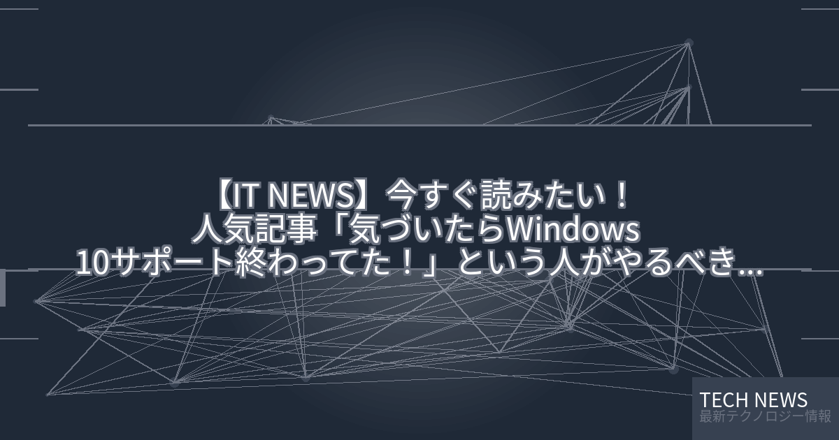 ・元記事タイトル:【今すぐ読みたい!人気記事】「気づいたらWindows 10サポート終わってた!」という人がやるべきこと – PC Watch