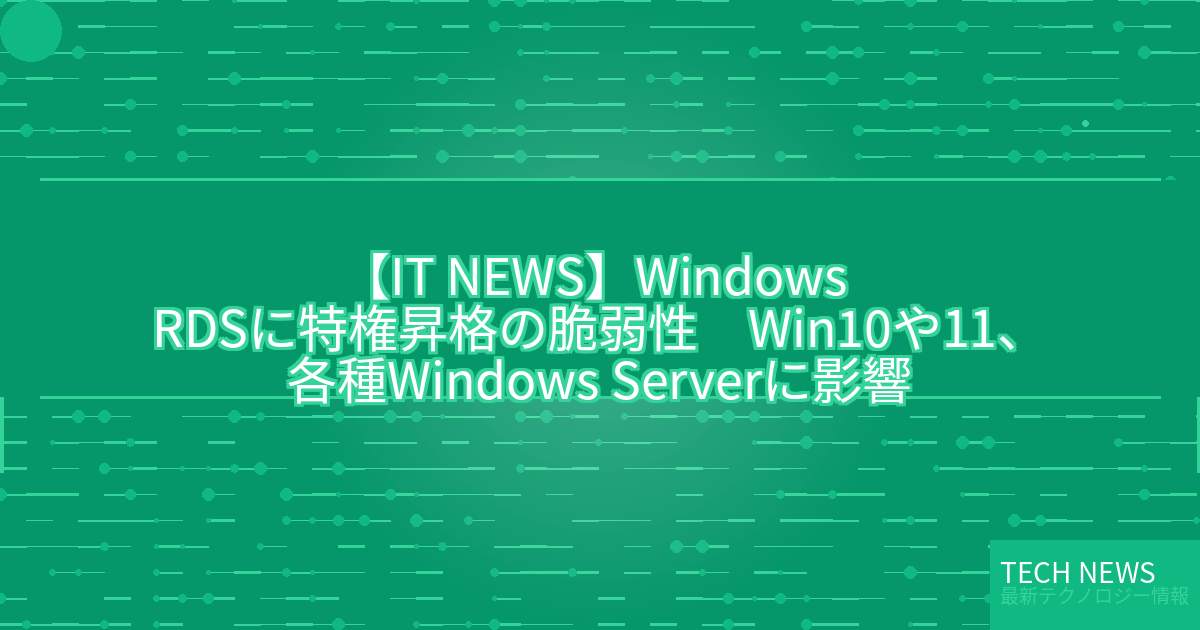 記事タイトル:Windows RDSに特権昇格の脆弱性 Win10や11、各種Windows Serverに影響