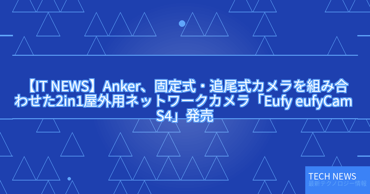 ・元記事タイトル:Anker、固定式・追尾式カメラを組み合わせた2in1屋外用ネットワークカメラ「Eufy eufyCam S4」発売