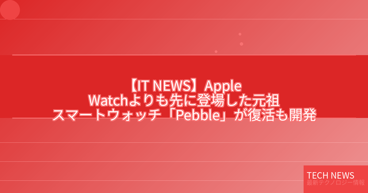 ・元記事タイトル:Apple Watchよりも先に登場した元祖スマートウォッチ「Pebble」が復活も開発コミュニティと生みの親が対立し再び危機に陥る