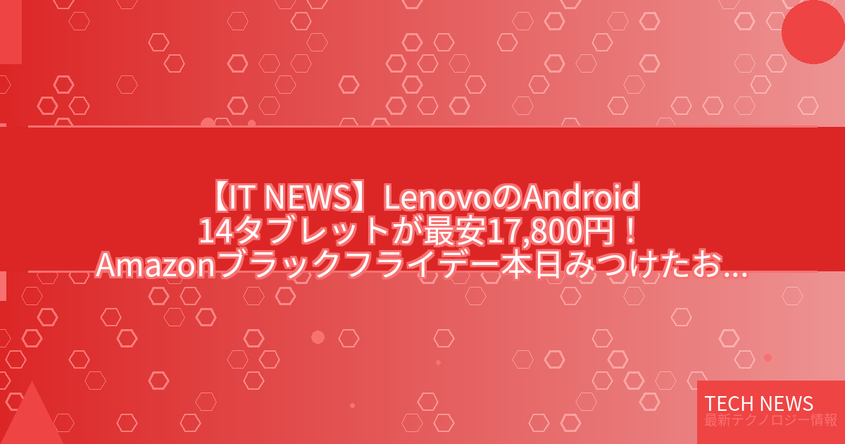 ・元記事タイトル:LenovoのAndroid 14タブレットが最安17,800円!【Amazonブラックフライデー】【本日みつけたお買い得情報】