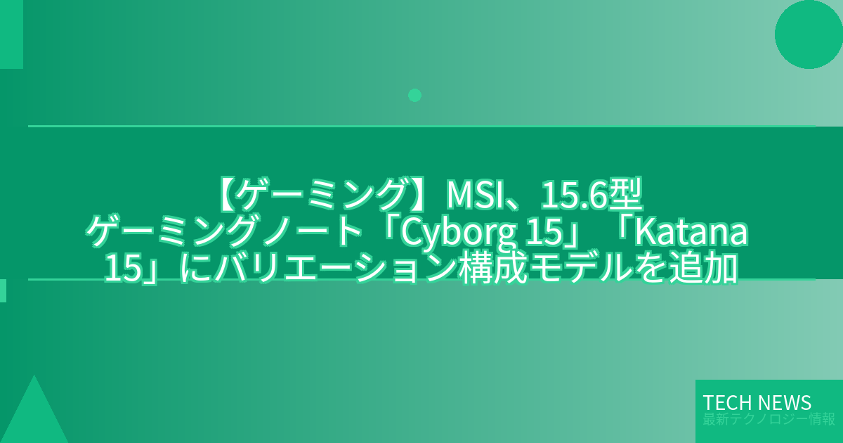 記事タイトル:MSI、15.6型ゲーミングノート「Cyborg 15」「Katana 15」にバリエーション構成モデルを追加