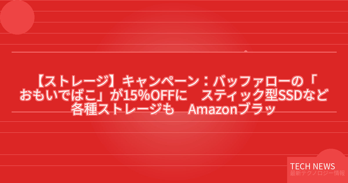 記事タイトル:キャンペーン:バッファローの「おもいでばこ」が15%OFFに スティック型SSDなど各種ストレージも AmazonブラックフライデーSALEで