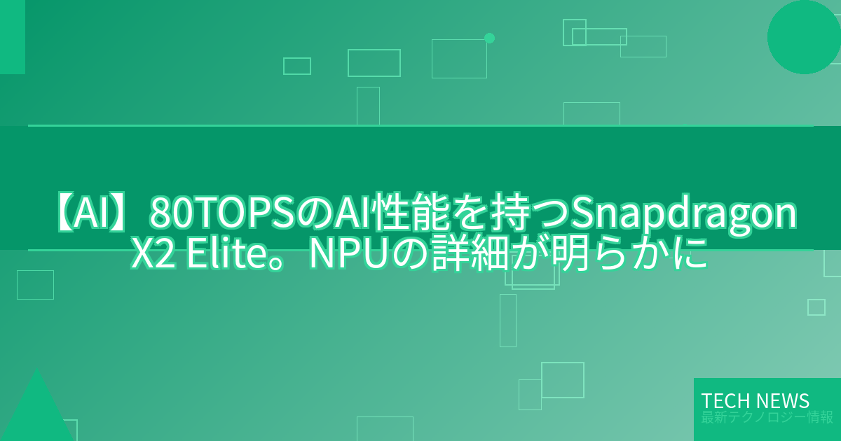 ・元記事タイトル:80TOPSのAI性能を持つSnapdragon X2 Elite。NPUの詳細が明らかに