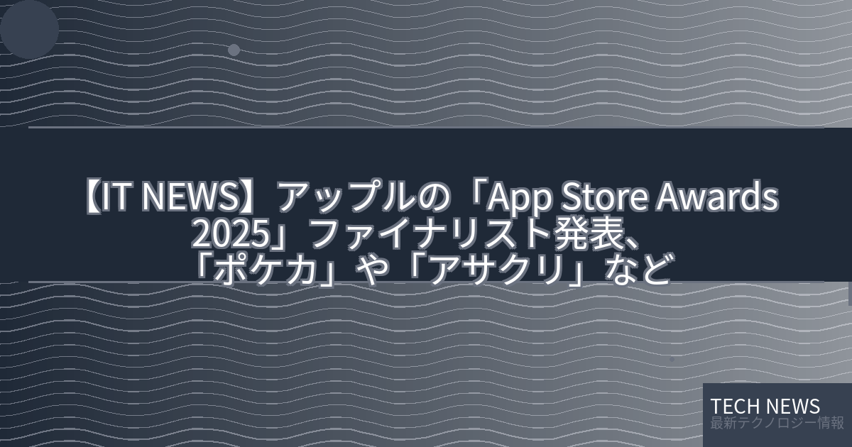 以下の通り、アップルの「App Store Awards 2025」ファイナリスト発表についての詳細な考察記事を作成しました。