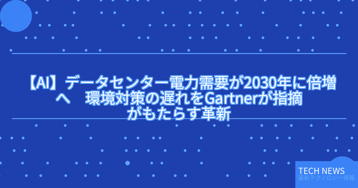 【AI】データセンター電力需要が2030年に倍増へ 環境対策の遅れをGartnerが指摘がもたらす革新