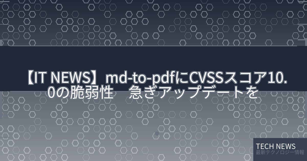 記事タイトル:md-to-pdfにCVSSスコア10.0の脆弱性 急ぎアップデートを