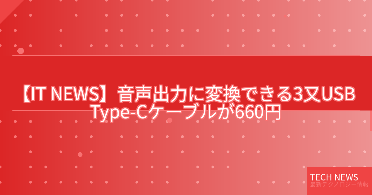 記事タイトル:音声出力に変換できる3又USB Type-Cケーブルが660円