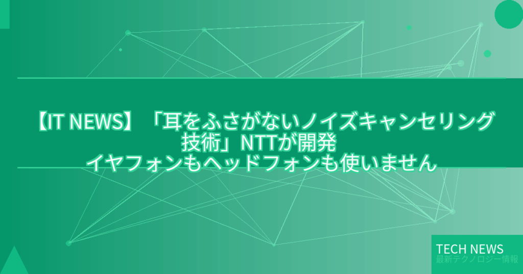【IT NEWS】「耳をふさがないノイズキャンセリング技術」NTTが開発 イヤフォンもヘッドフォンも使いません