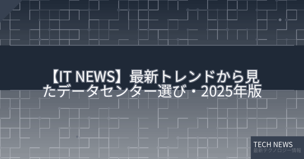 【IT NEWS】最新トレンドから見たデータセンター選び・2025年版