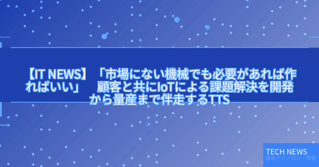 【IT NEWS】「市場にない機械でも必要があれば作ればいい」 顧客と共にIoTによる課題解決を開発から量産まで伴走するTTS