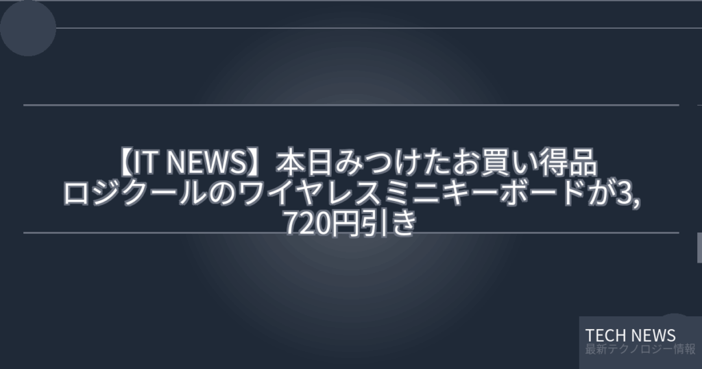 【IT NEWS】本日みつけたお買い得品ロジクールのワイヤレスミニキーボードが3,720円引き