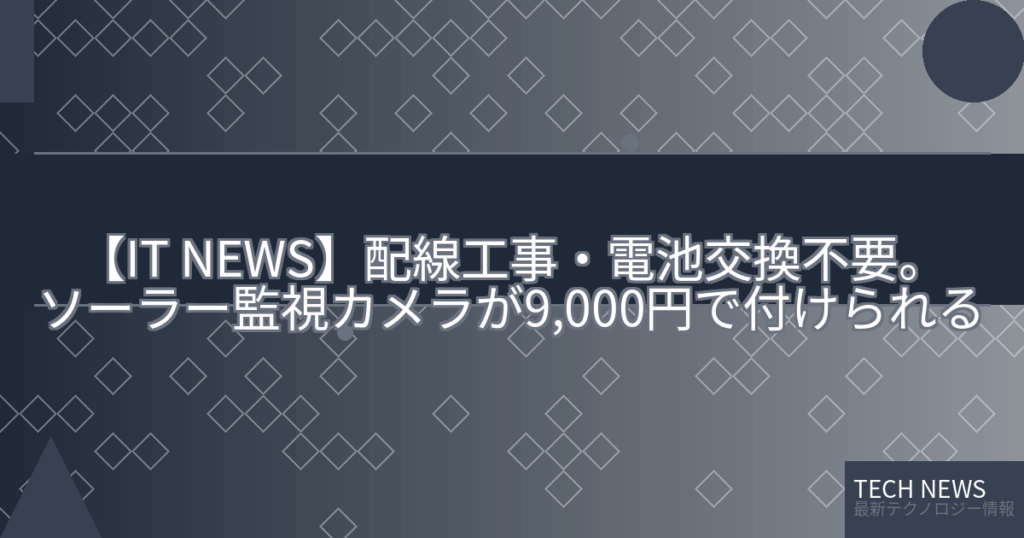 【IT NEWS】配線工事・電池交換不要。ソーラー監視カメラが9,000円で付けられる