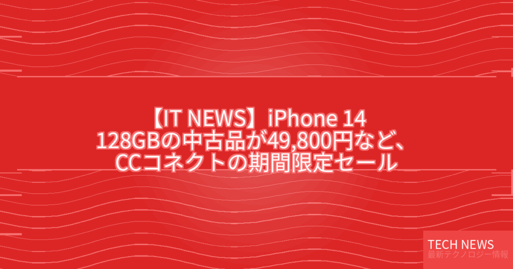 【IT NEWS】iPhone 14 128GBの中古品が49,800円など、CCコネクトの期間限定セール