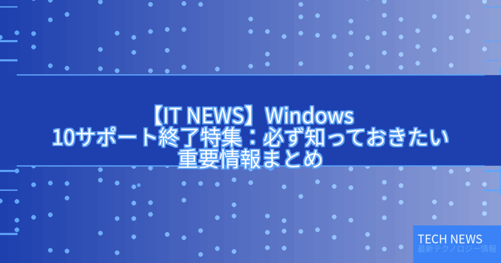【IT NEWS】Windows 10サポート終了特集:必ず知っておきたい重要情報まとめ