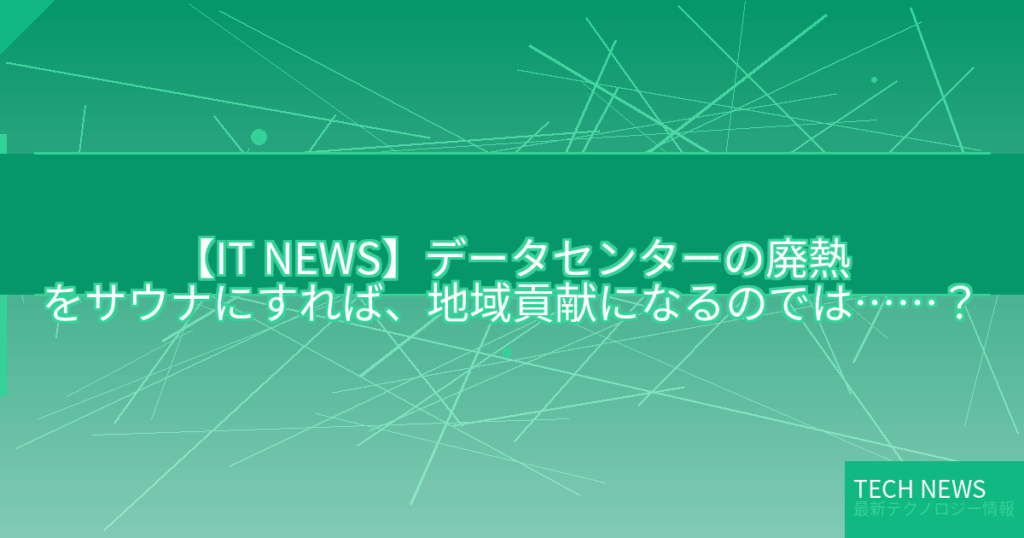 【IT NEWS】データセンターの廃熱をサウナにすれば、地域貢献になるのでは……?