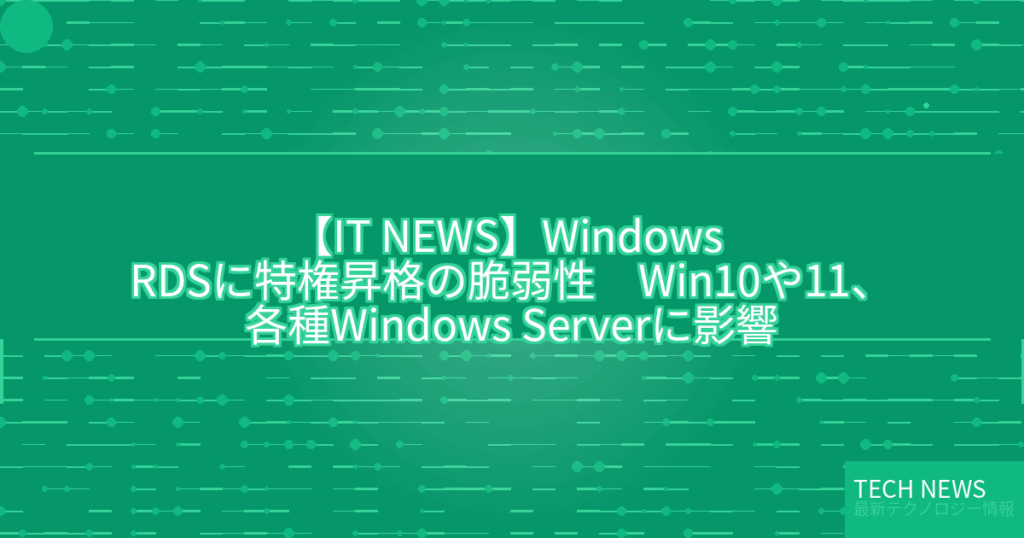 【IT NEWS】Windows RDSに特権昇格の脆弱性 Win10や11、各種Windows Serverに影響